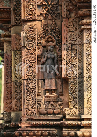 精巧な彫刻で知られるアンコール遺跡バンテアイ・スレイ