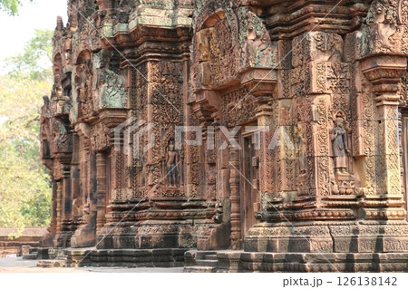 精巧な彫刻が施されたアンコール遺跡バンテアイ・スレイ