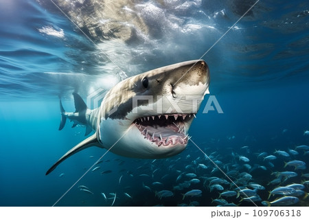 Captivating Image. Majestic Shark Gliding Gracefully Through Crystal Clear Blue Ocean Waves