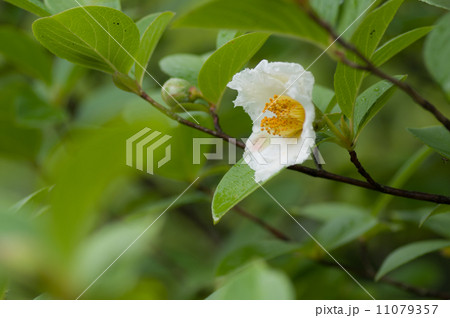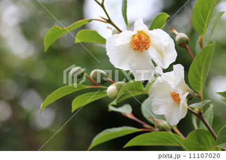 可憐な夏椿(ナツツバキ)の花とつぼみ