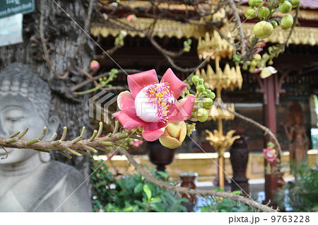 花の咲いたホウガンボクの枝、聖樹、スリランカの沙羅双樹