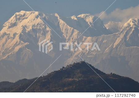 ネパール・ダンプスから望むサランコットの丘とヒマラヤ南麓の山々