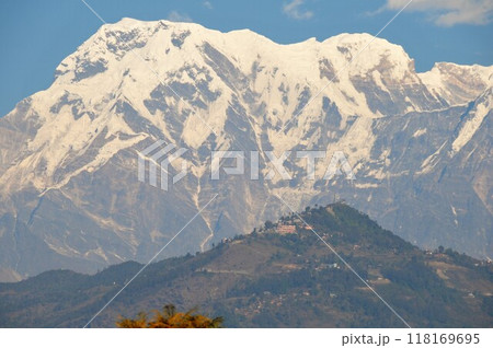 ネパール、ポカラ、ヒマラヤ山脈、アンナプルナ山群、アンナプルナサウス、サランコットの丘