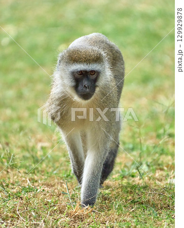 草原を歩くベルベットモンキー(タンザニア)