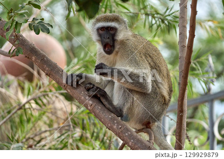 木の枝に座るベルベットモンキー(タンザニア)