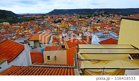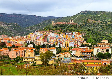 サルディーニャ、ボーザ旧市街のパノラマ