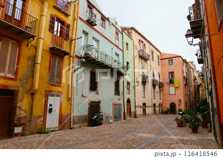 サルディーニャ、ボーザ旧市街の町並み