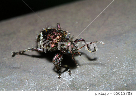 生き物 昆虫 ドウガネサルハムシ、金属光沢が美しい小さな甲虫。正面顔は怒っている?