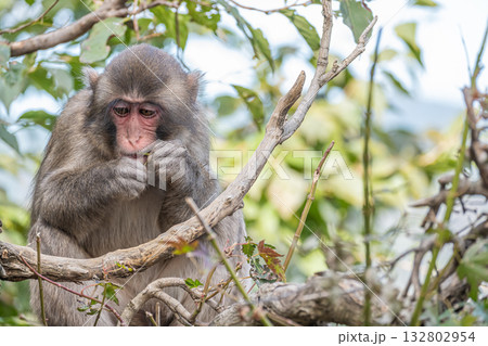 木の上にすわるニホンザル 嵐山モンキーパークいわたやま