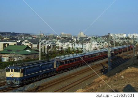 東海道貨物線を走行するEF65-1100号機牽引のジョイフルトレインゆとり_2008/2/9撮影