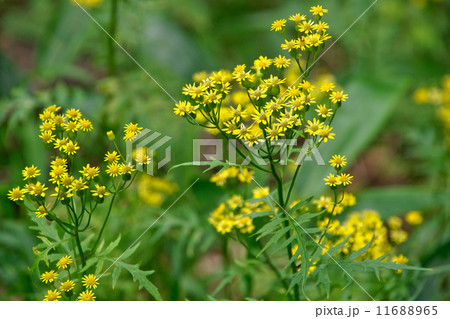 黄色い花が咲いたサワギクの全体/長野県八千穂高原・6月