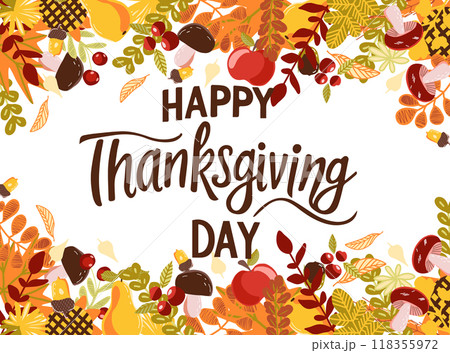 Thanksgiving Day vector greeting card. Hand drawn illustration.
