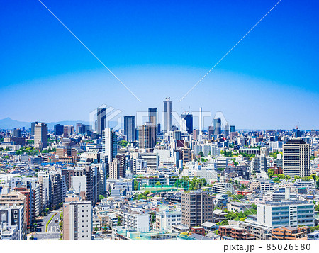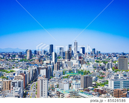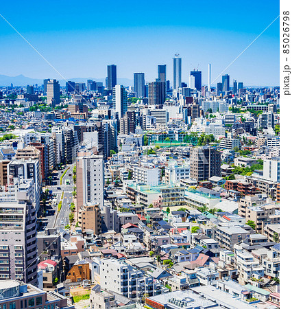 日本の東京都市景観 池袋駅周辺・サンシャイン60通りなどを望む