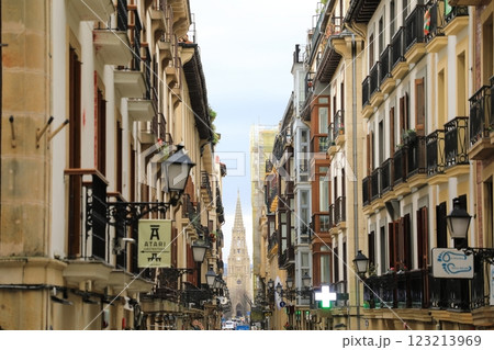 真っ青な空の下の歴史的な建物 スペインのサンセバスチャンの街並み