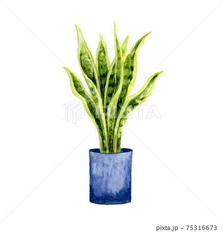 Cute watercolor painting style illustration of Snake Plant, isolated on white background