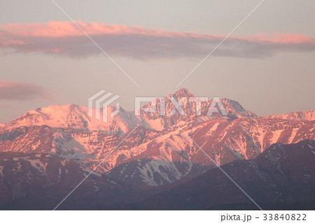 南米チリ共和国の首都サンチアゴ市内から望む夕刻のアンデス山脈