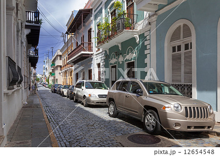 Puerto Rico, Old San Juan, Row of historic houses in Old Town