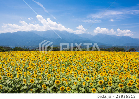 山梨県 北杜市明野 ひまわり畑と南アルプス