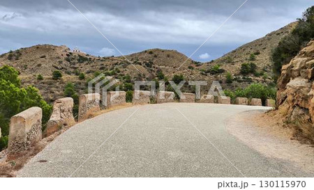 The Scenic Mountain Road Features a Beautifully Curved Path against a Dramatic Sky