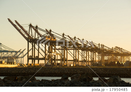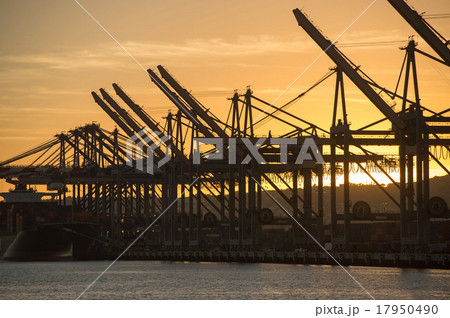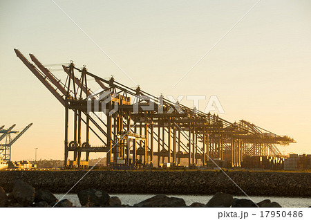 アメリカ、ロングビーチ港、アメリカ、ロングビーチ港、コンテナクレーン、夕景