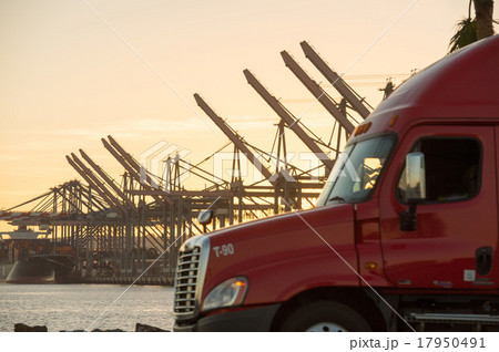アメリカ、ロングビーチ港、アメリカ、ロングビーチ港、コンテナクレーン、トラック、輸送