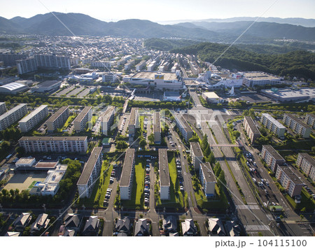 朝日に輝く高蔵寺ニュータウン アピタショッピングモール周辺 愛知県春日井市(ドローンによる空撮)