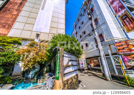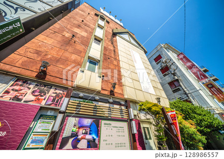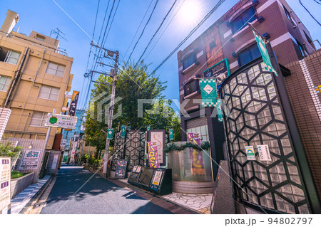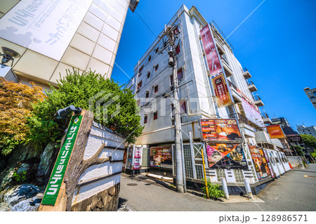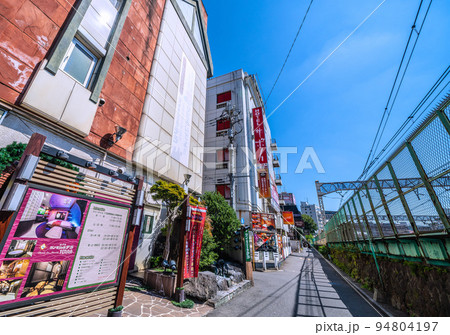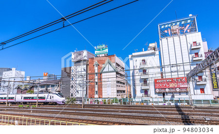 日本の東京都市景観 鶯谷駅前のホテル街などを望む(右はJRの路線)