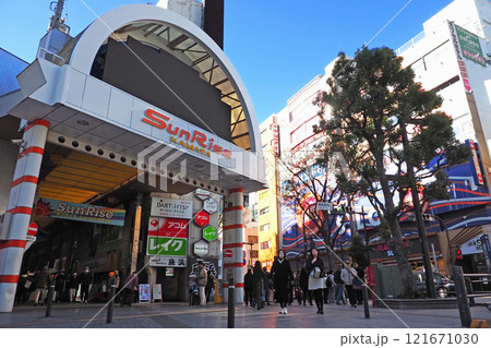 日本の東京都市景観 蒲田駅西口のサンライズ・ショッピングモールなどを望む