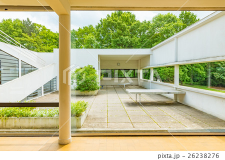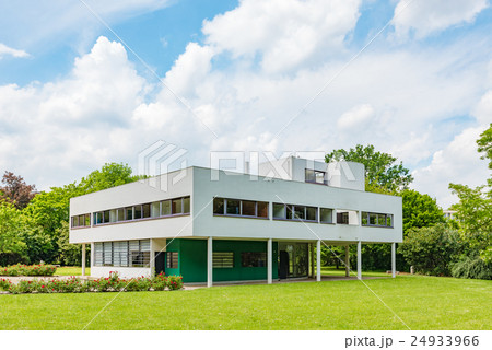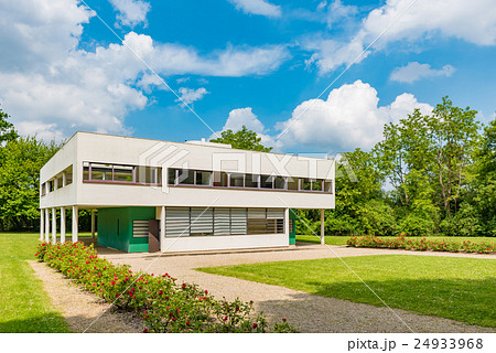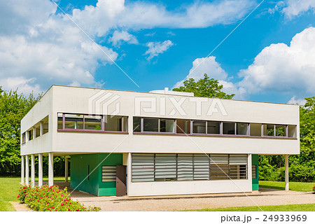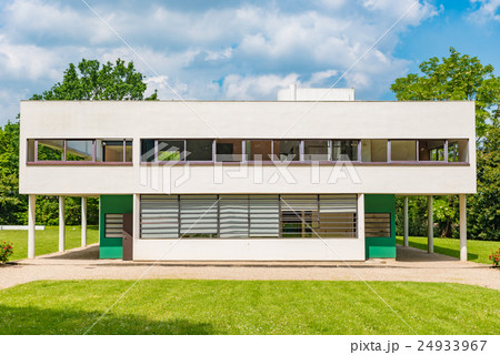 サヴォワ邸の外観でル・コルビュジエの設計によるフランスはパリの郊外