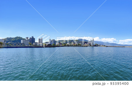 斑尾山野尻湖デッキより望む野尻湖と北信五岳