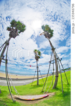 福岡県行橋市の長井浜海水浴場サーフボードのブランコ