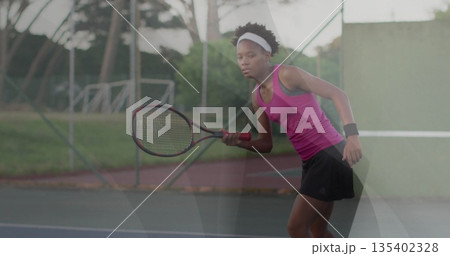 Creative silhouette of female tennis player. Racquet sport vector illustration or banner template in