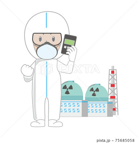 線量計を持って防護服を着た原発作業員