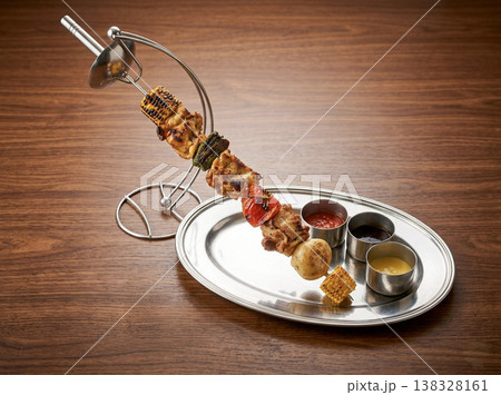 Fresh strawberry, pineapple and a kiwi on a skewer