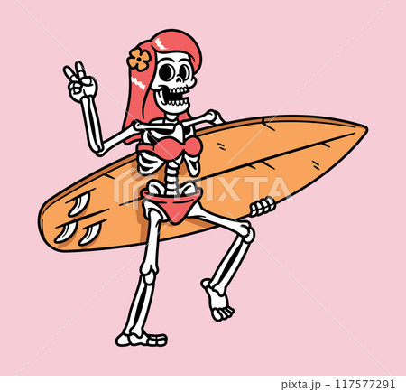Illustration of skull with surfing board. Summer theme. Vector illustration