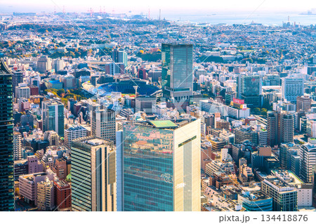 日本の横浜都市景観 横浜の街。横浜市役所や関内駅前のベースゲート横浜関内タワーなどを望む