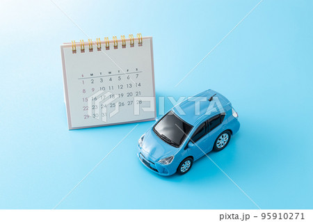 車とカレンダー ブルーバック