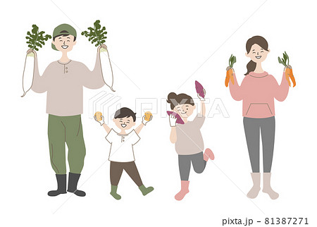 野菜の収穫を楽しむ家族