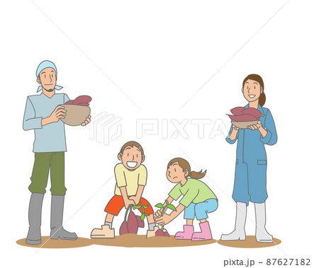 芋掘りをする親子