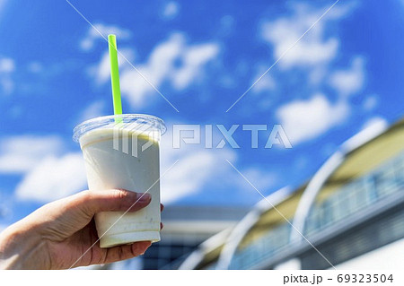 シェイクを楽しむ若い女性のイメージ素材