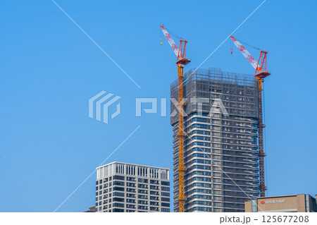 マンション・ビルの建設現場 タワークレーン