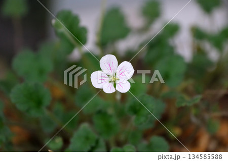 ハルシュタットの街中にひっそりと咲く一輪のヒメフウロの花