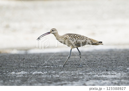 春に干潟や浜辺に訪れる長い嘴と長い足が特徴のエレガントなオオソリハシシギ
