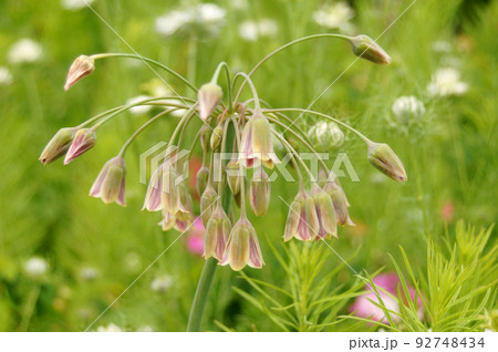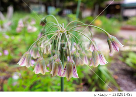 ガーデンで咲く珍しいネクタロスコルダム・シクラム・ブルガリカムの花