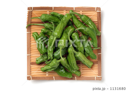 白バックでざるに乗せたししとう