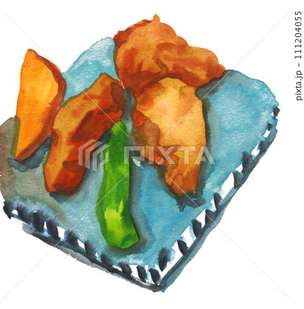 水彩で描いたフグの唐揚げ24203pix7