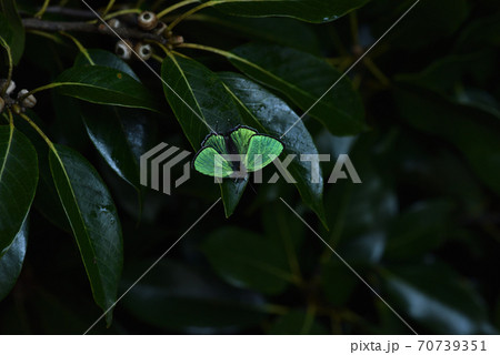 生き物 昆虫 ミドリシジミ、オスの翅表は金属光沢のある美しい金緑色。初夏のハンノキ林で