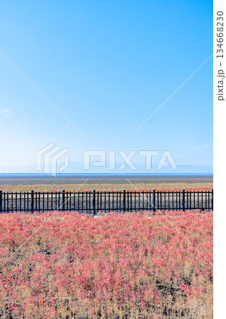 秋の東与賀海岸シチメンソウ群生地 佐賀県佐賀市