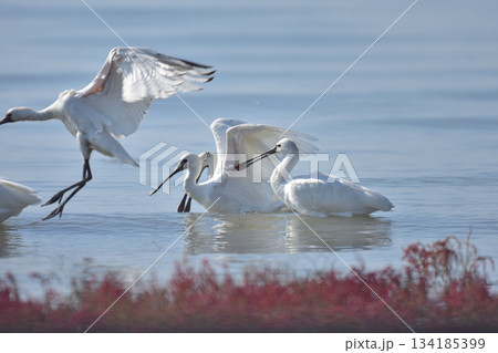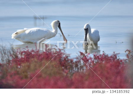 シチメンソウとクロツラヘラサギ