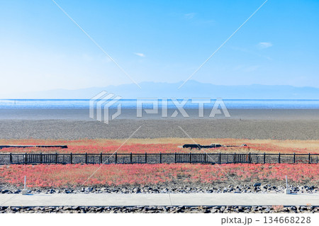 佐賀市の人気観光スポット東与賀干潟の海の紅葉シチメンソウ